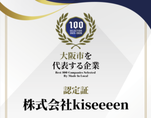 - 「大阪市を代表する企業100選」に、株式会社kiseeeenが選出されました。